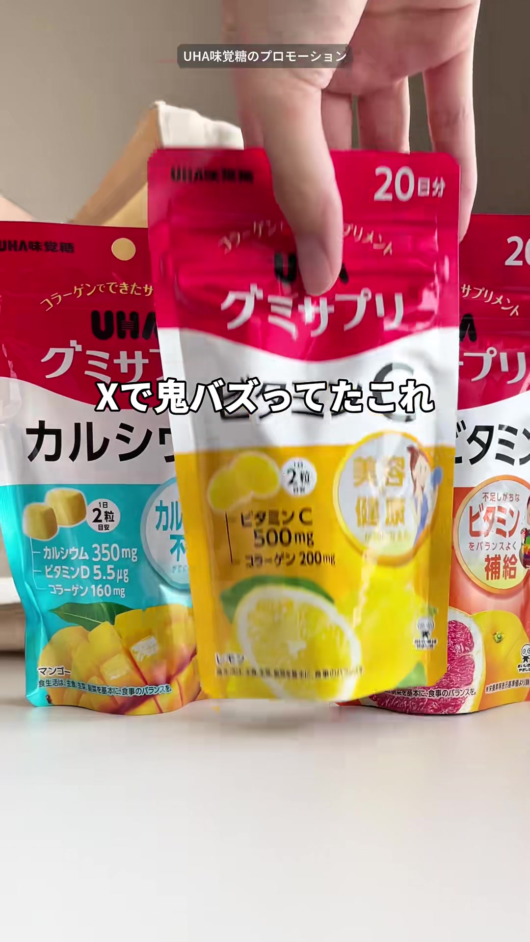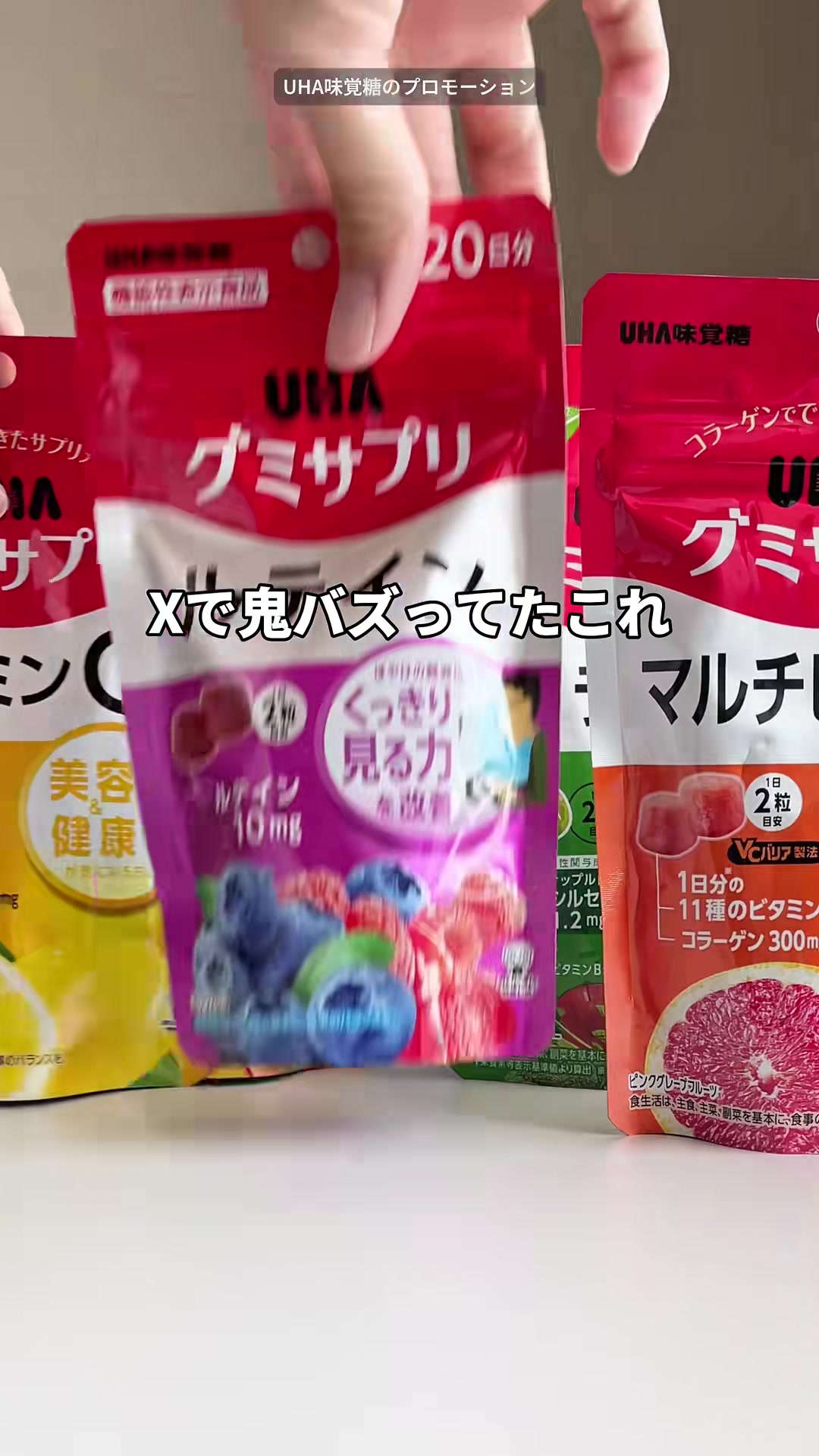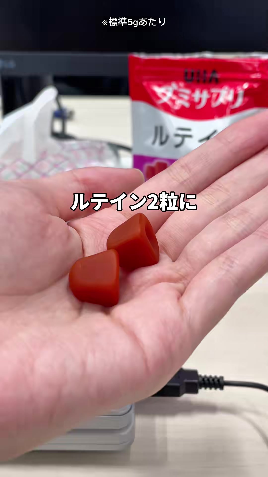 | 12-18秒 | 成分説明のテロップ | ルテイン + ゼアキサンチン配合 | 論文で効果が報告されたルテインとゼアキサンチンが入ってて、 | テロップメインのカット。手書き風フォント維持。成分名は黄色ハイライト。 | |