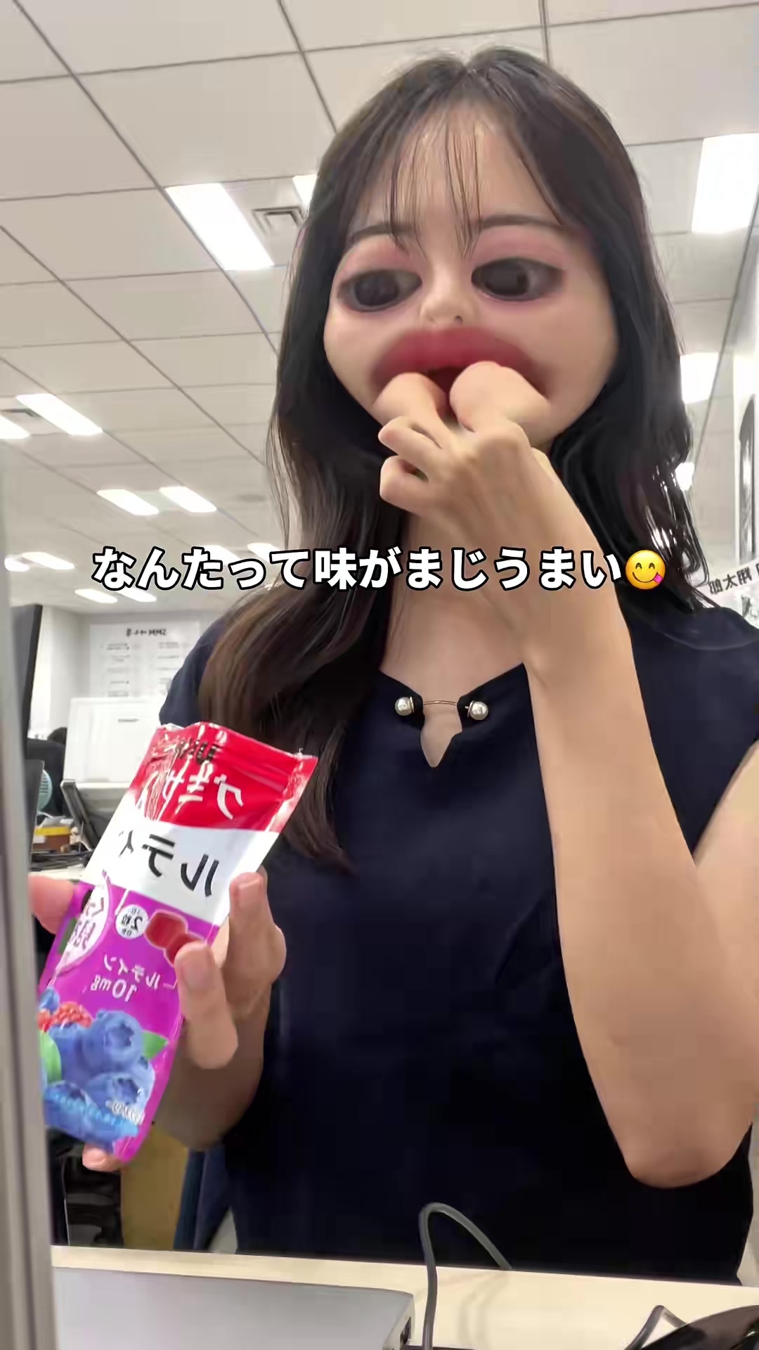 | 4-8秒 | 街頭インタビュー風 | 目のサプリ?飲んでないです | まだ飲んでいない?それ、もったいないかもしれません。 | ストック素材+吹き出しテロップ。テレビ番組風ワイプ演出。 | |